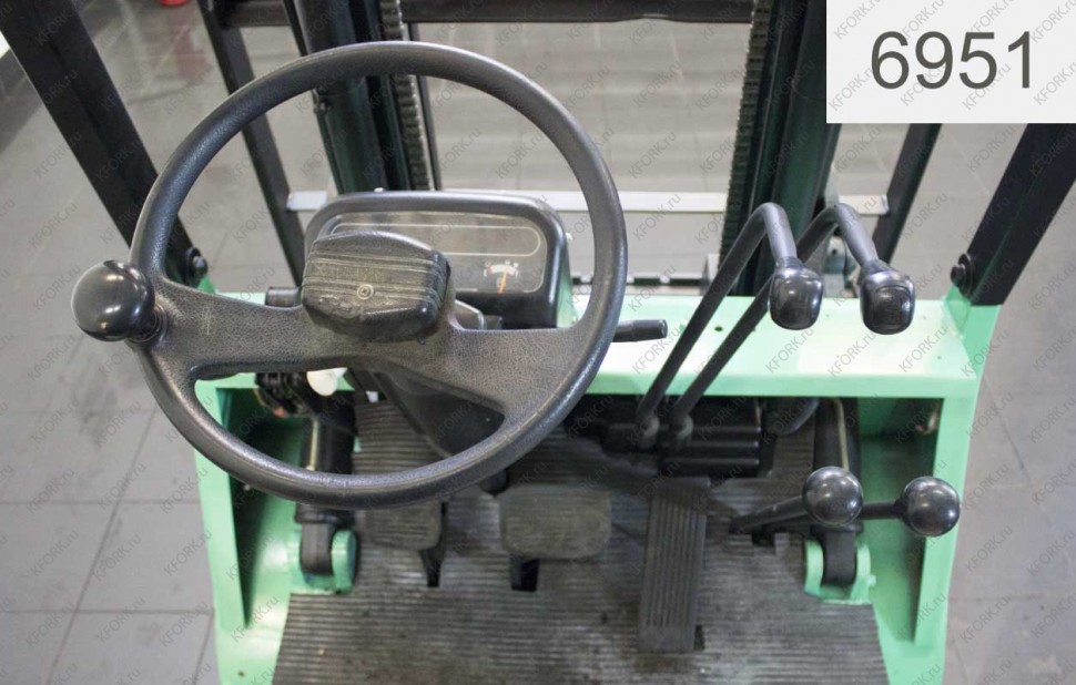 Бензиновый автопогрузчик Mitsubishi Б/У с интентарным номером 6951 1999 года выпуска. Состояние - удовлетв.. Имеет грузоподъемность 1500 кг. Гарантия: 2 мес или 300 м/час.