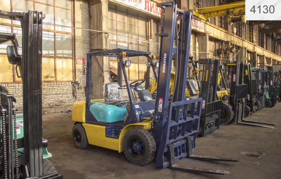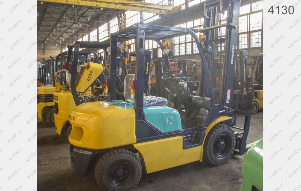 Дизельный автопогрузчик Komatsu Б/У с интентарным номером 4130 1996 года выпуска. Состояние - Хорошее. Имеет грузоподъемность 3000 кг. Гарантия: 1 мес или 200 м/час.