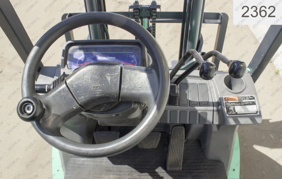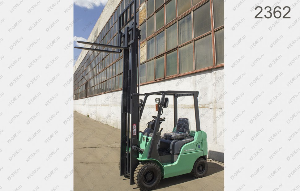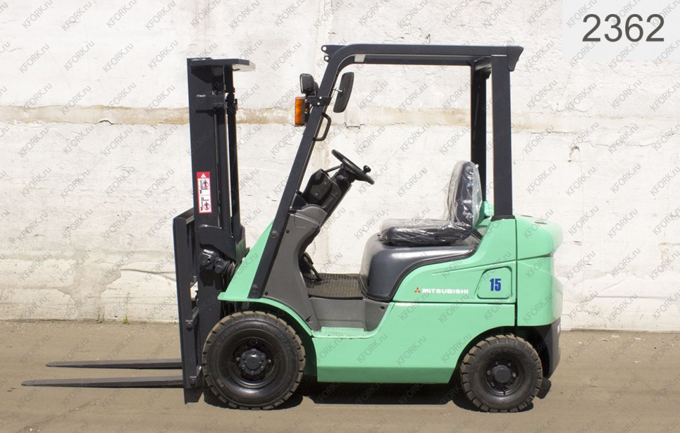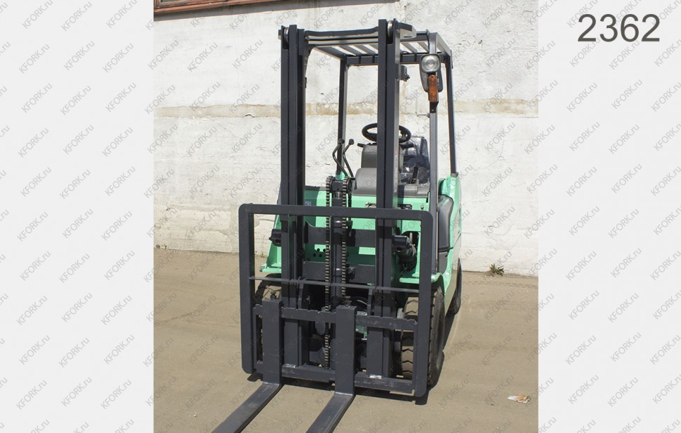 Дизельный автопогрузчик Mitsubishi Б/У с интентарным номером 2362 2008 года выпуска. Состояние - Хорошее. Имеет грузоподъемность 1500 кг. Гарантия: 3 мес или 500 м/час.