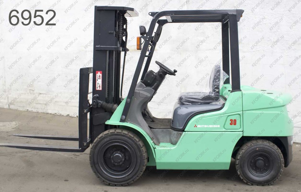 Дизельный автопогрузчик Mitsubishi Б/У с интентарным номером 6952 2008 года выпуска. Состояние - Хорошее. Имеет грузоподъемность 3000 кг. Гарантия: 4 мес или 500 м/час.