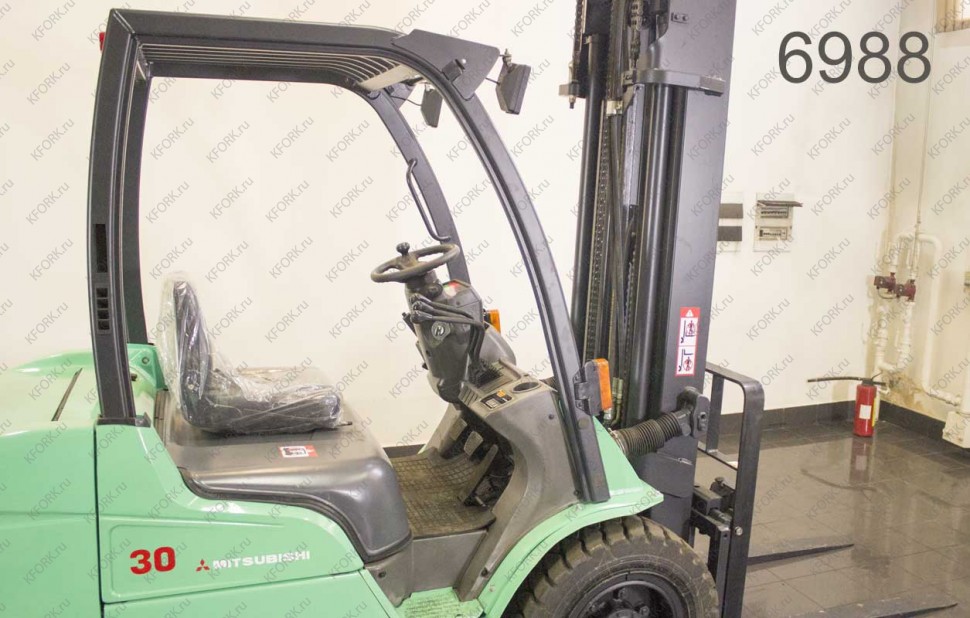 Дизельный автопогрузчик Mitsubishi Б/У с интентарным номером 6988 2008 года выпуска. Состояние - Хорошее. Имеет грузоподъемность 3000 кг. Гарантия: 4 мес или 500 м/час.