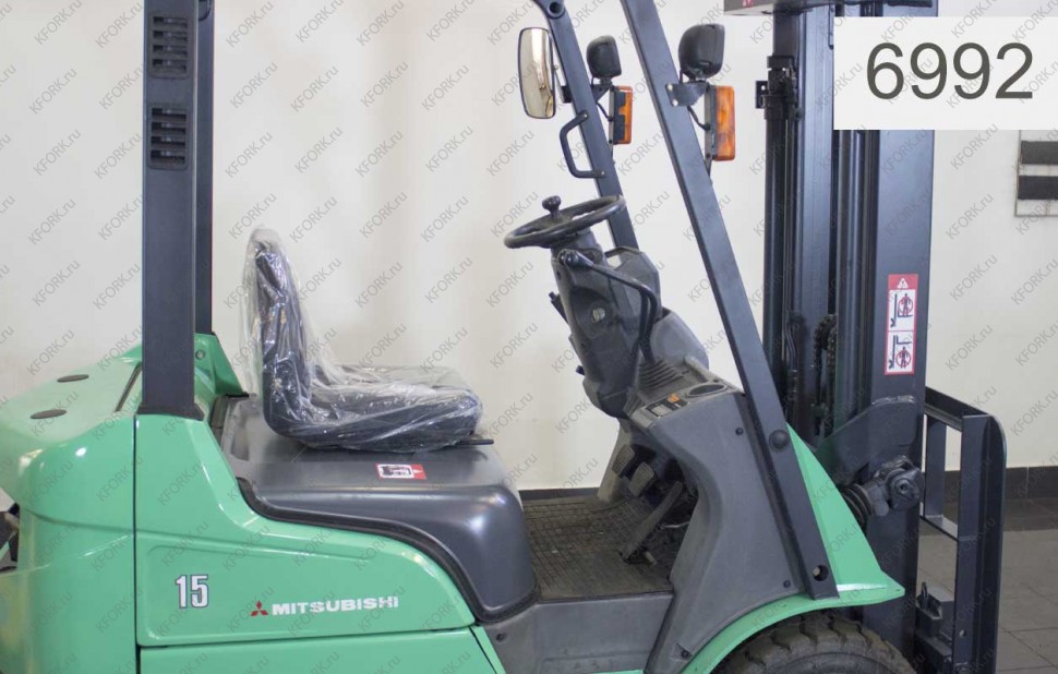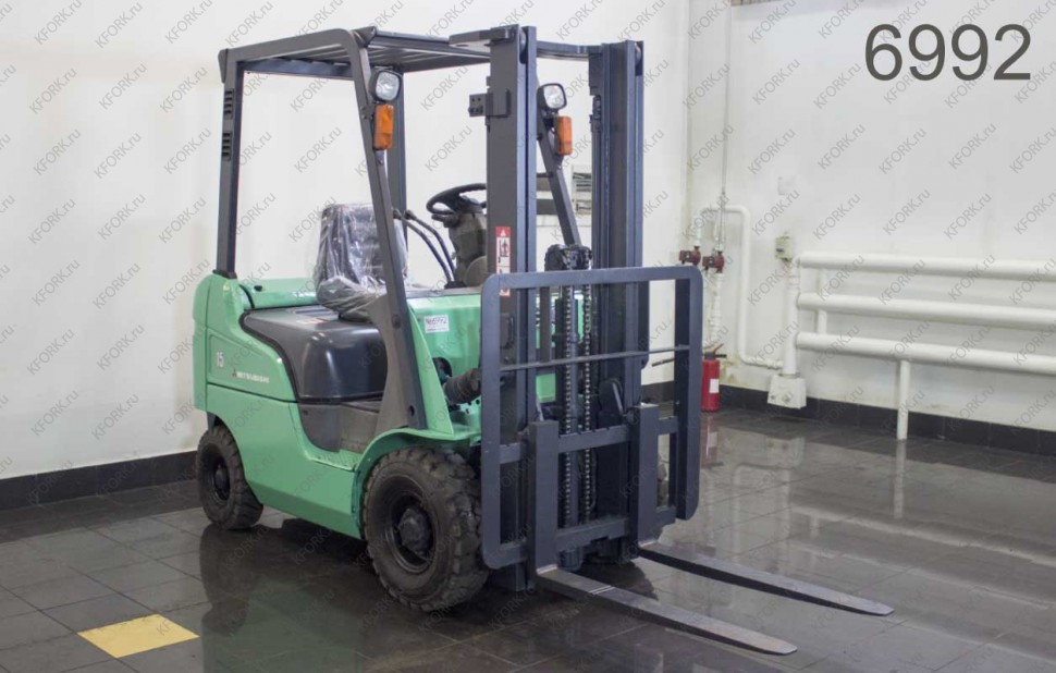 Дизельный автопогрузчик Mitsubishi Б/У с интентарным номером 6992 2007 года выпуска. Состояние - Отличное. Имеет грузоподъемность 1500 кг. Гарантия: 6 мес или 800 м/час.