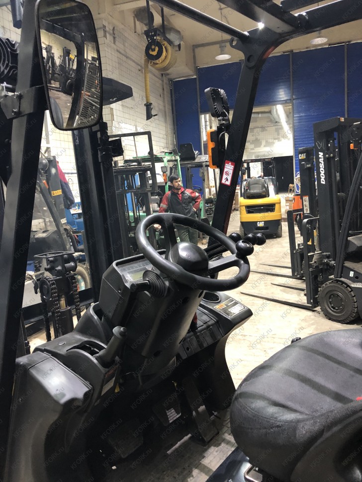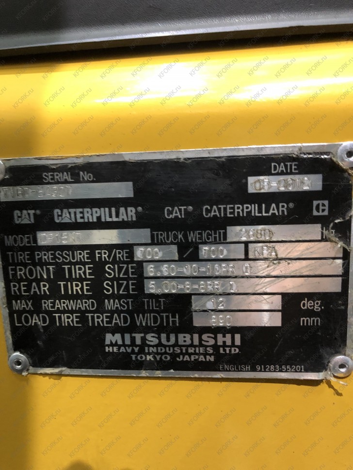 Дизельный автопогрузчик Caterpillar DP15NT с инвентарным номером КМ053 2012 года выпуска. Имеет грузоподъемность 1500 кг. Гарантия: 3 мес или 500 м/час.