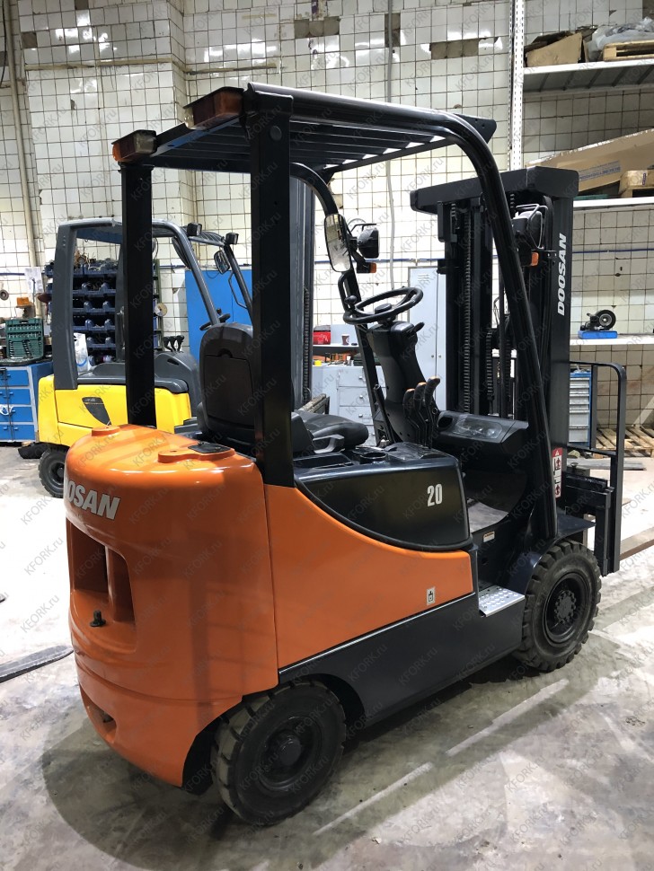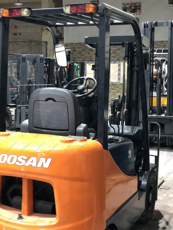 Дизельный автопогрузчик Doosan D20SC-5 с инвентарным номером КМ049 2013 года выпуска. Имеет грузоподъемность 2000 кг. Гарантия: 3 мес или 500 м/час.