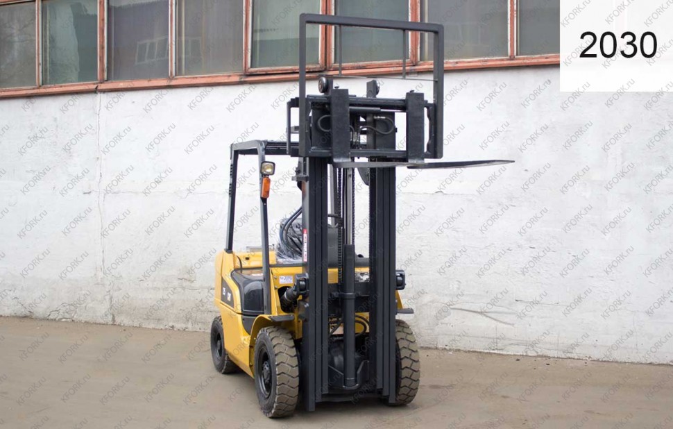 Газ-Бензиновый автопогрузчик Caterpillar Б/У с интентарным номером 2030 2008 года выпуска. Состояние - Хорошее. Имеет грузоподъемность 2500 кг. Гарантия: 3 мес или 500 м/час.