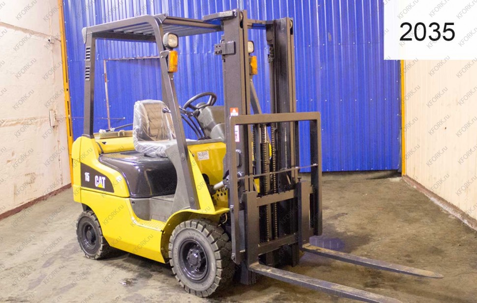 Газ-Бензиновый автопогрузчик Caterpillar Б/У с интентарным номером 2035 2011 года выпуска. Состояние - Хорошее. Имеет грузоподъемность 1500 кг. Гарантия: 4 мес или 500 м/час.