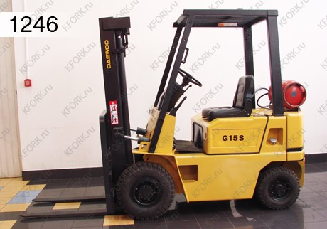 Газ-Бензиновый автопогрузчик Daewoo Б/У с интентарным номером 1246 2000 года выпуска. Состояние - удовлетв.. Имеет грузоподъемность 1500 кг. Гарантия: 2 мес или 300 м/час.