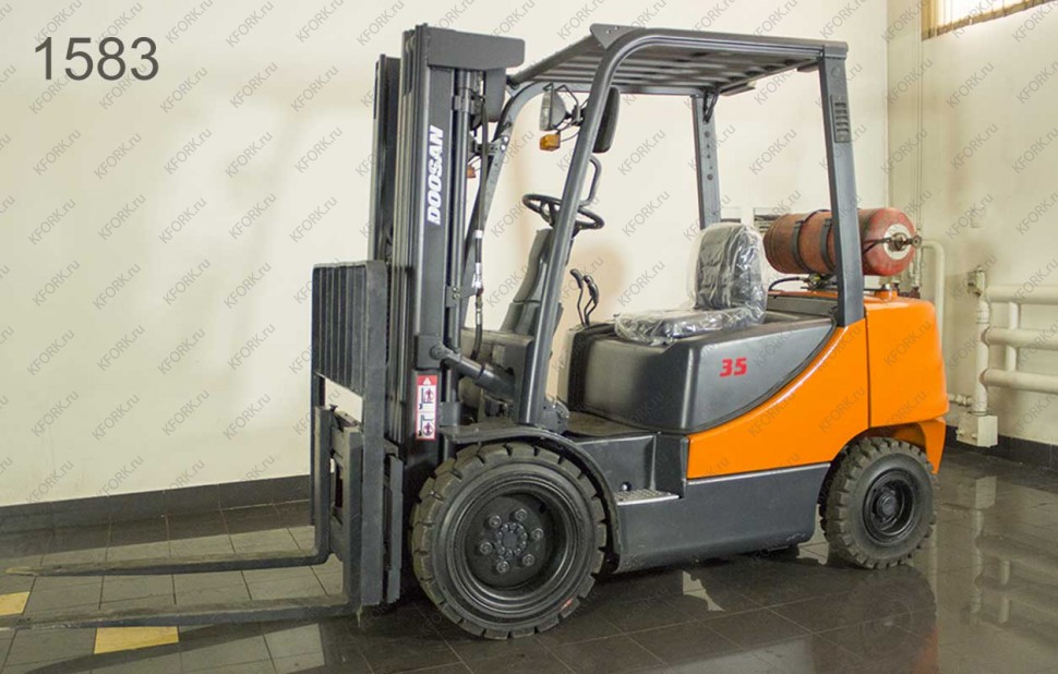 Газовый автопогрузчик Doosan Б/У с интентарным номером 1583 2007 года выпуска. Состояние - Хорошее. Имеет грузоподъемность 3500 кг. Гарантия: 3 мес или 500 м/час.