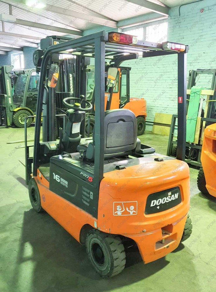 Электрический Doosan B16X-5 с инвентарным номером K00184 2008 года выпуска. Имеет грузоподъемность 1600 кг. Гарантия: 3 мес или 300 м/час.