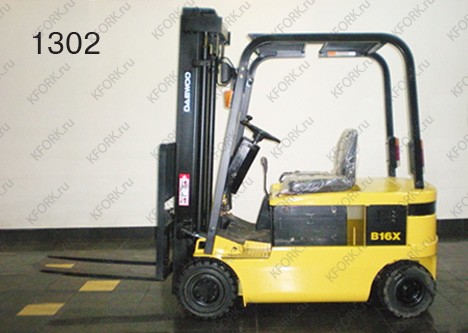 Электрический погрузчик Daewoo Б/У с интентарным номером 1302 2003 года выпуска. Состояние - Хорошее. Имеет грузоподъемность 1600 кг. Гарантия: 3 мес или 500 м/час.