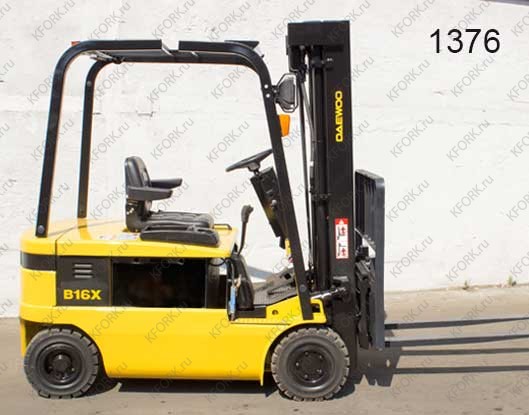 Электрический погрузчик Daewoo Б/У с интентарным номером 1376 2004 года выпуска. Состояние - Хорошее. Имеет грузоподъемность 1600 кг. Гарантия: 3 мес или 500 м/час.