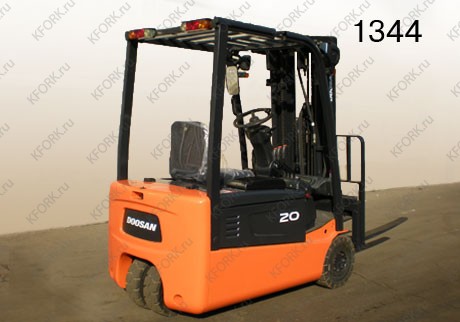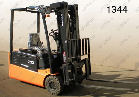 Электрический погрузчик Doosan Б/У с интентарным номером 1344 2008 года выпуска. Состояние - Отличное. Имеет грузоподъемность 2000 кг. Гарантия: 6 мес или 800 м/час.