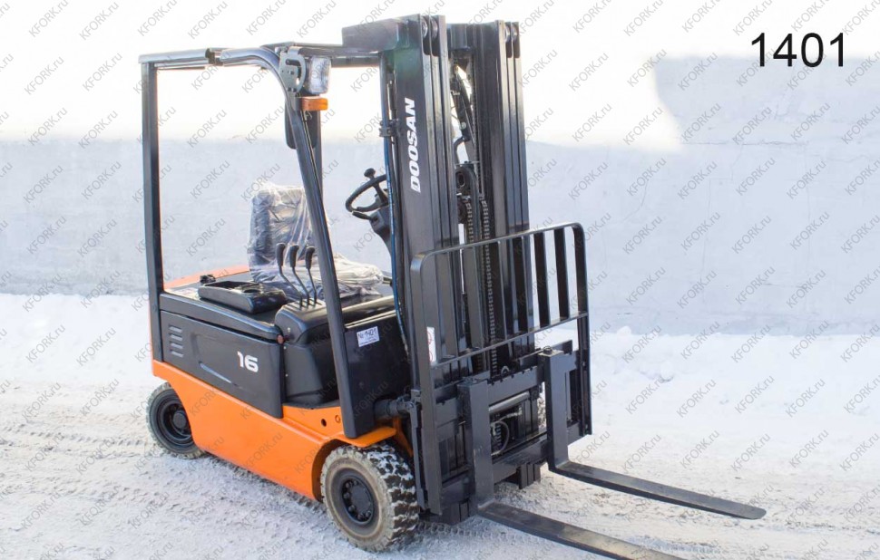 Электрический погрузчик Doosan Б/У с интентарным номером 1401 2007 года выпуска. Состояние - Хорошее. Имеет грузоподъемность 1600 кг. Гарантия: 4 мес или 500 м/час.