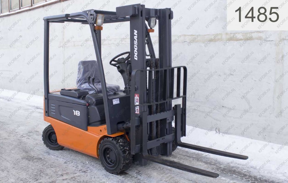 Электрический погрузчик Doosan Б/У с интентарным номером 1485 2007 года выпуска. Состояние - Хорошее. Имеет грузоподъемность 1800 кг. Гарантия: 3 мес или 500 м/час.