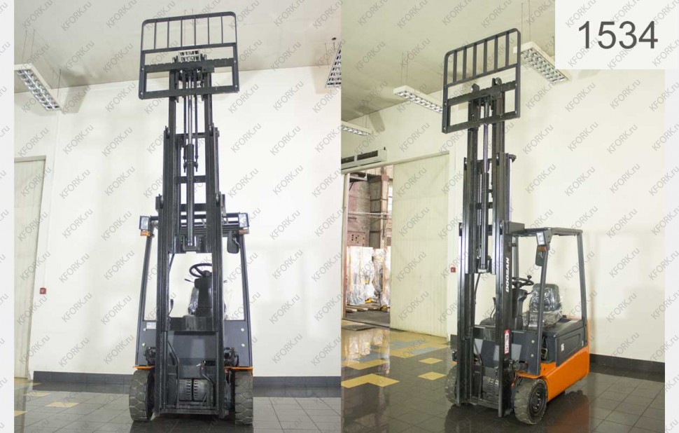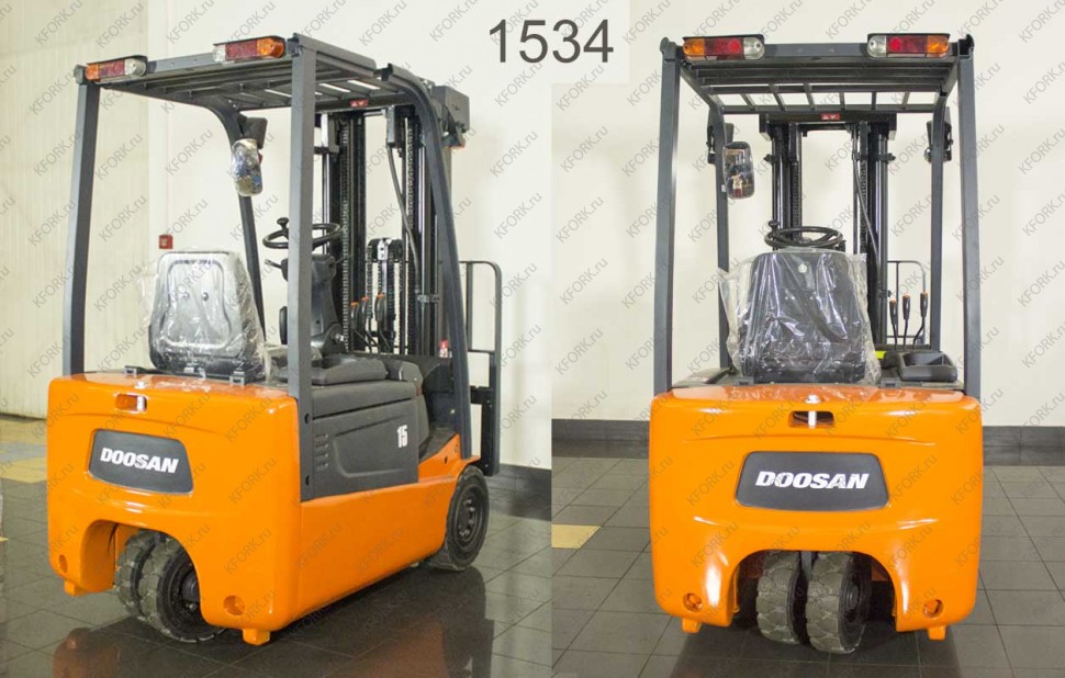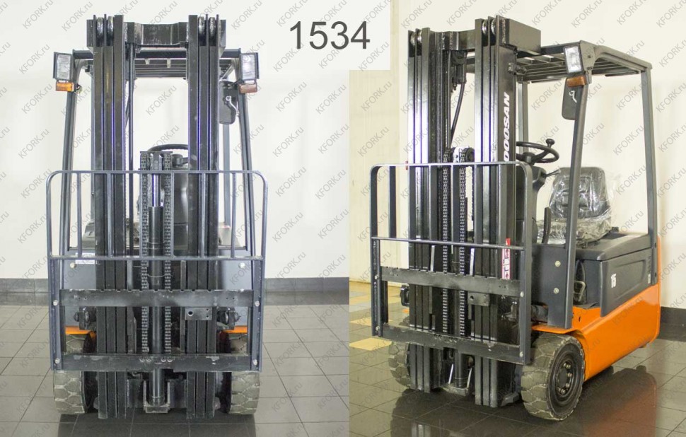 Электрический погрузчик Doosan Б/У с интентарным номером 1534 2012 года выпуска. Состояние - Хорошее. Имеет грузоподъемность 1500 кг. Гарантия: 1 мес или 200 м/час.