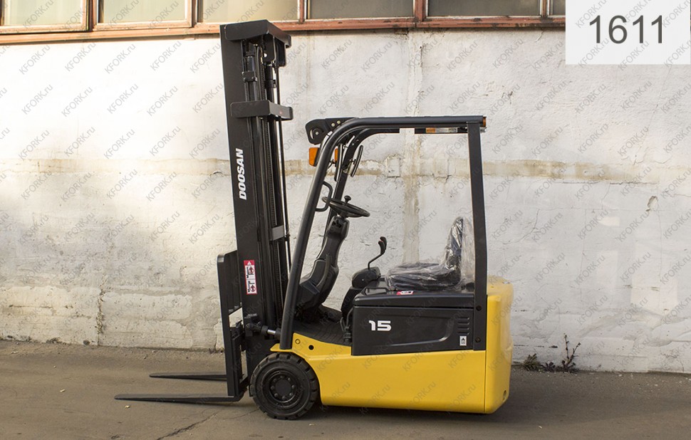 Электрический погрузчик Doosan Б/У с интентарным номером 1611 2006 года выпуска. Состояние - Хорошее. Имеет грузоподъемность 1500 кг. Гарантия: .