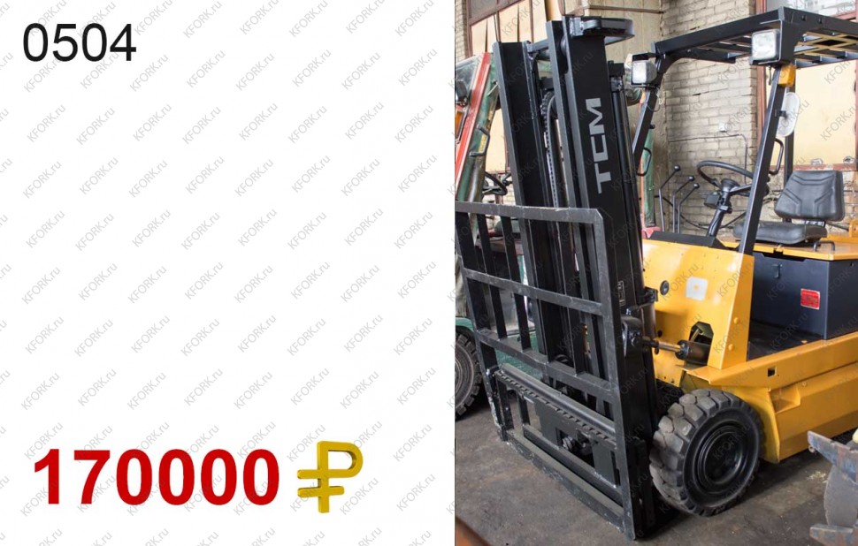 Электрический погрузчик TCM Б/У с интентарным номером 504 1997 года выпуска. Состояние - Хорошее. Имеет грузоподъемность 2000 кг. Гарантия: .