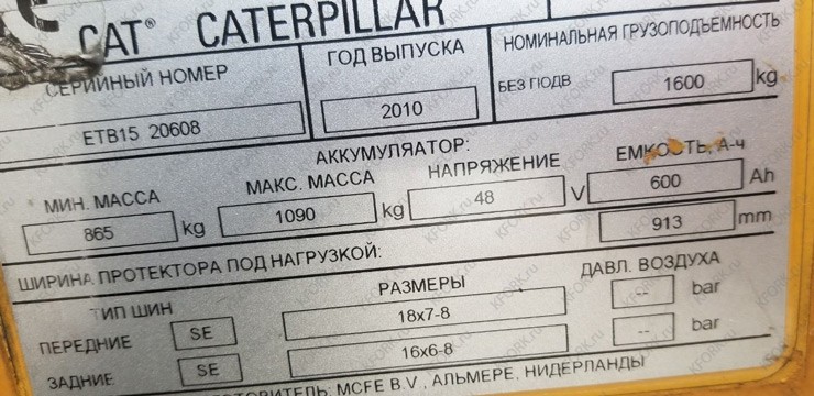 Электропогрузчик вилочный Caterpillar модели ЕР16NT б/у с инвентарным номером K00053 2010 года выпуска. Состояние - отличное. Имеет грузоподъемность 1600 кг. Гарантия: 3 месяца или 500 м/час.