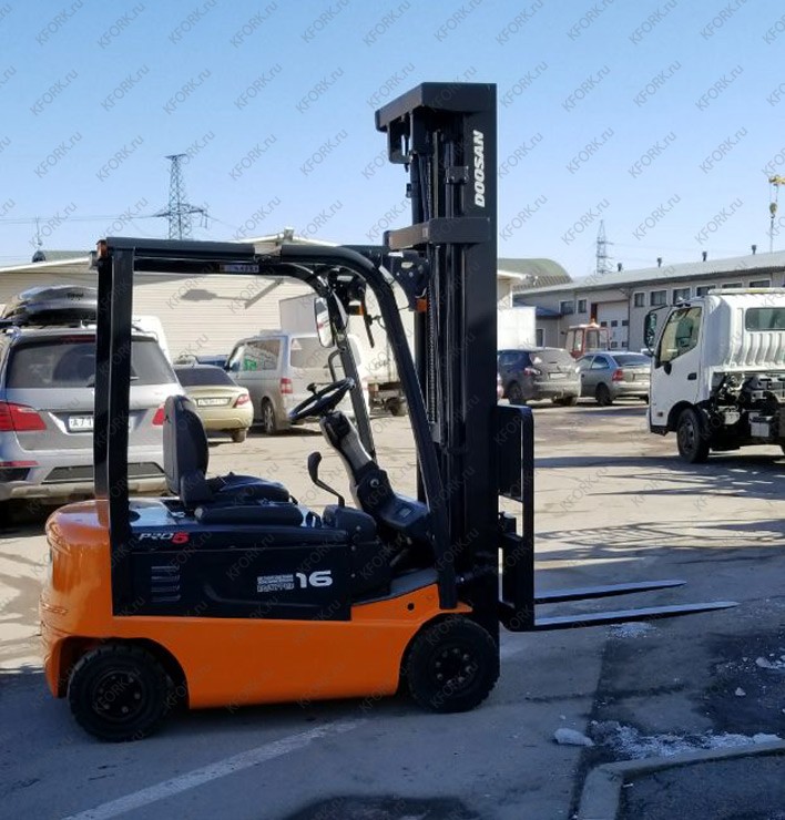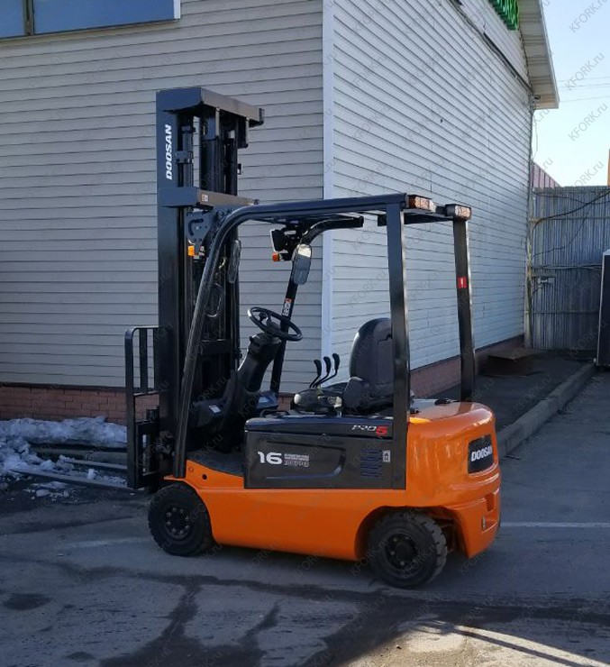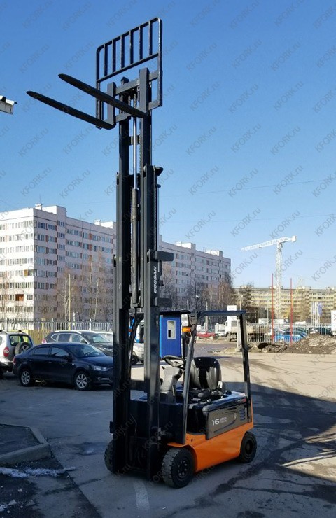 Электропогрузчик вилочный Doosan модели B16X-5 б/у с инвентарным номером K00020 2007 года выпуска. Состояние - хорошее. Имеет грузоподъемность 1600 кг. Гарантия: 6 месяцев или 1000 м/час.