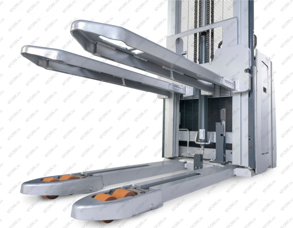 С грузоподъемностью до 2-х тонн и центром тяжести в 600 мм, данный штабелер с легкостью справляется с тяжелыми паллетами, распределяя вес равномерно и обеспечивая безопасную и стабильную работу даже при максимальных нагрузках. Но его главная особенность — это возможность работать с двумя паллетами одновременно, что удваивает производительность и существенно сокращает время на погрузочно-разгрузочные операции.